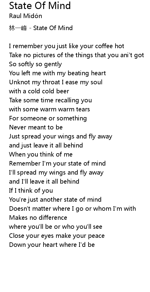 | Remember I'm your state of mind | |