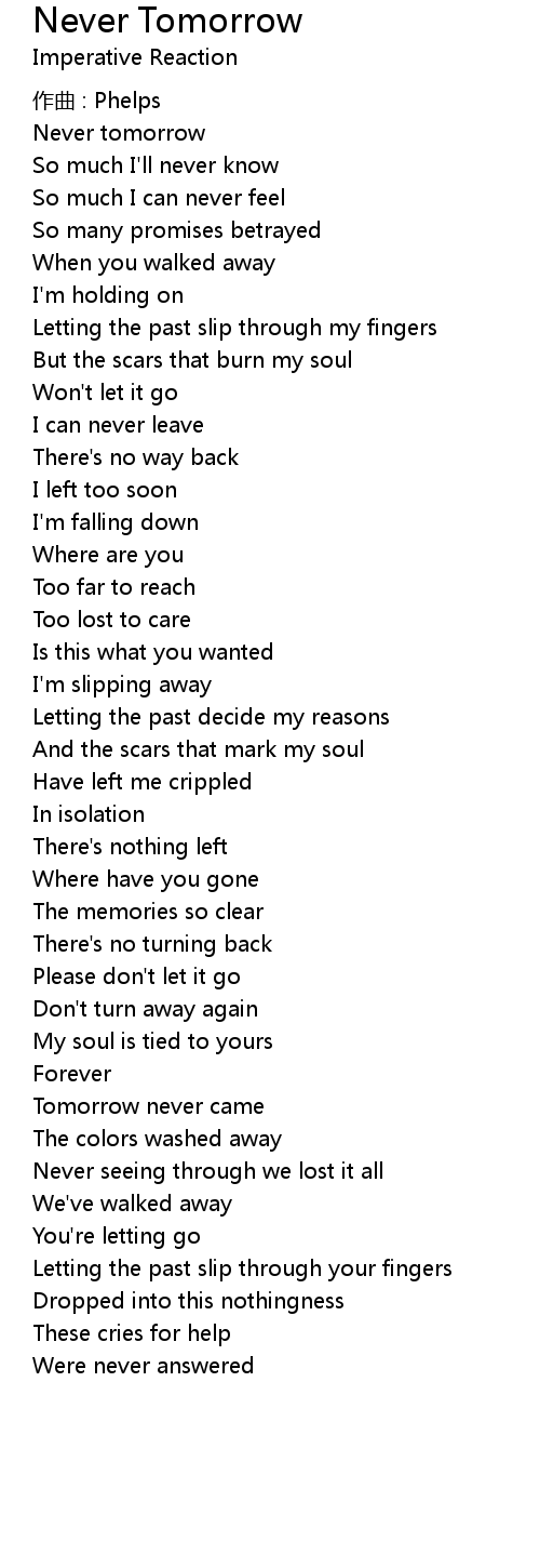 | Never tomorrow | |