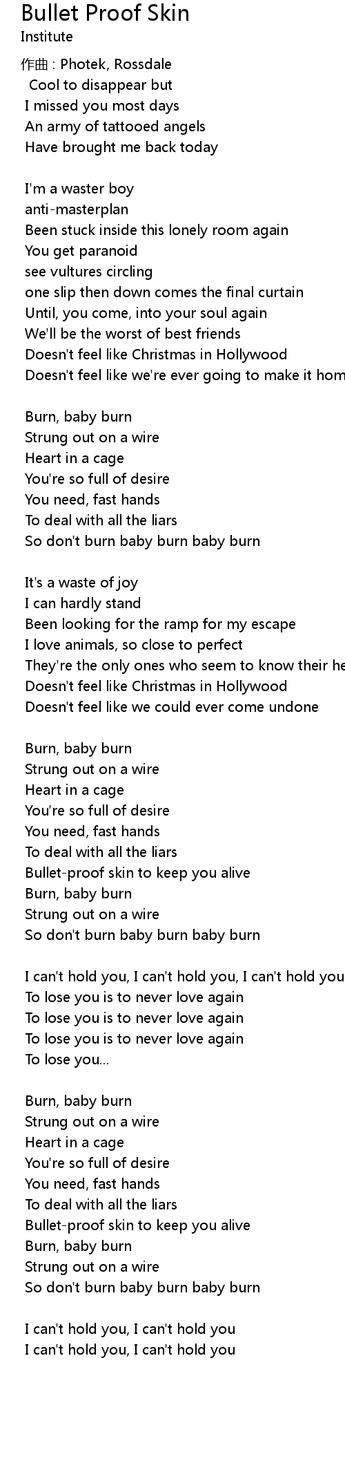 | 歌曲 | Bullet Proof Skin |