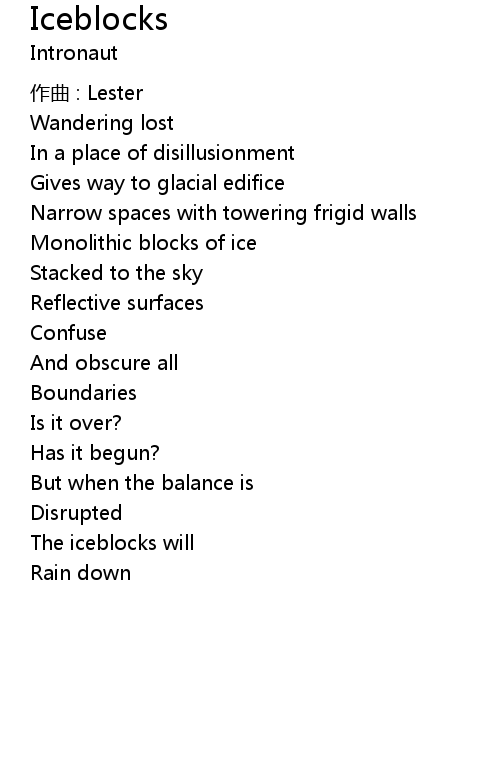 | Monolithic blocks of ice | |