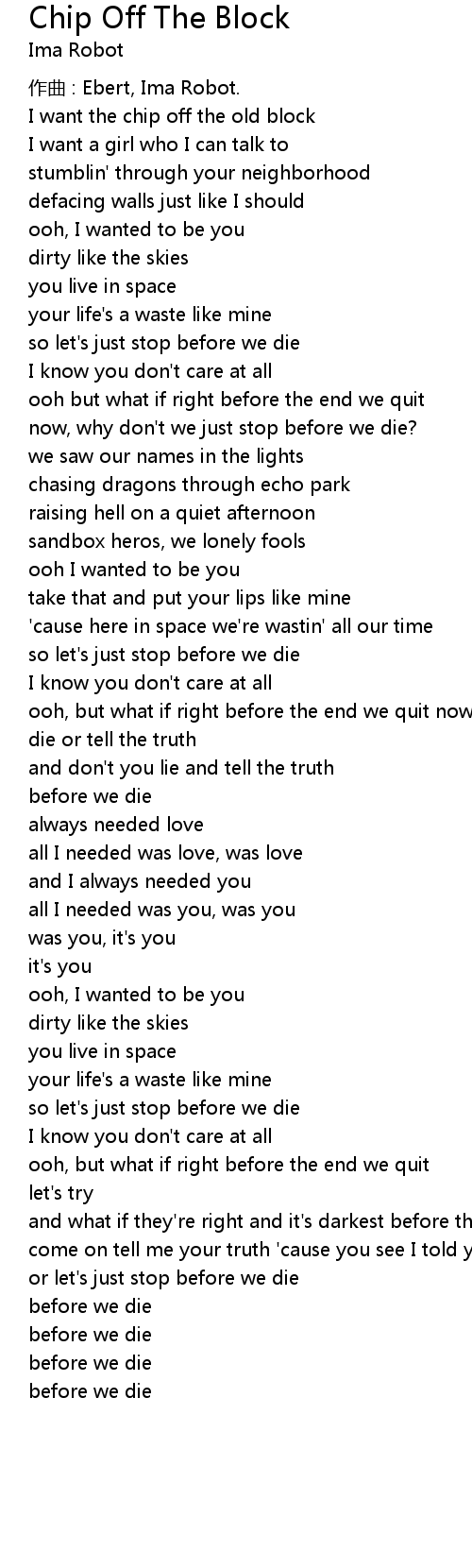 | 歌曲 | Chip Off The Block |