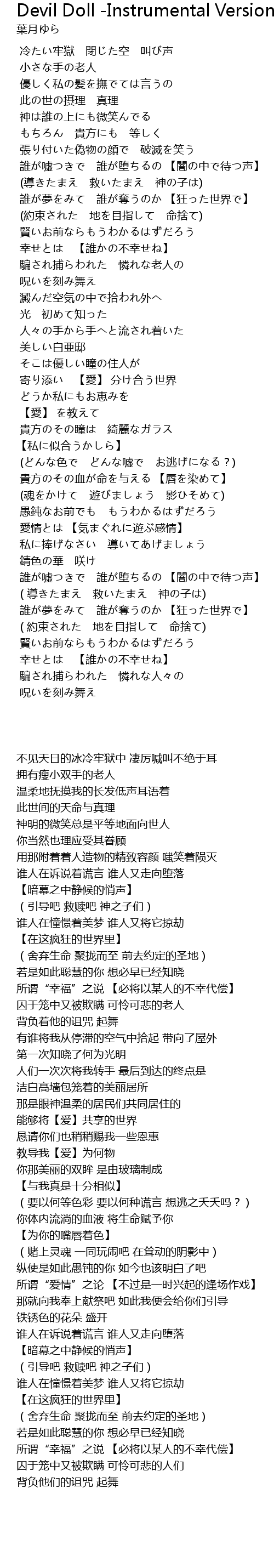 | 歌曲 | Devil Doll -Instrumental Version- |
