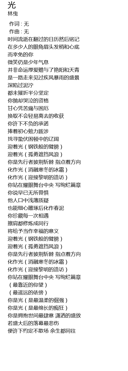 | [01:05.14] | 迎着光(孤勇遮挡风浪) |