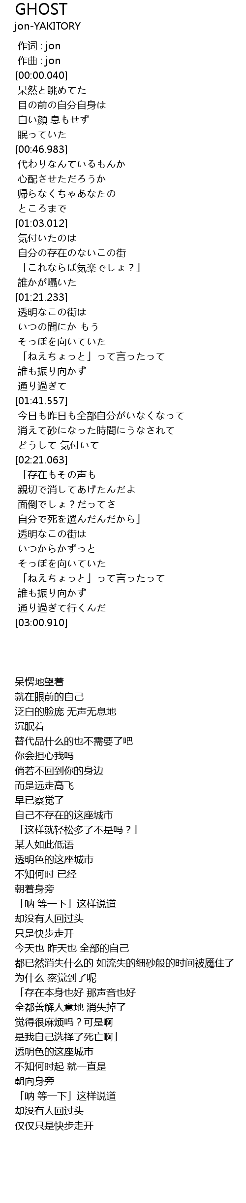 | [00:40.385] | 泛白的脸庞 无声无息地 |