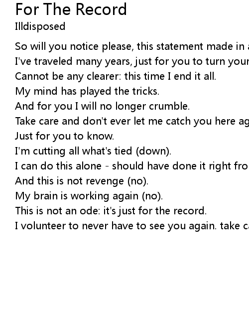 歌曲 For The Record