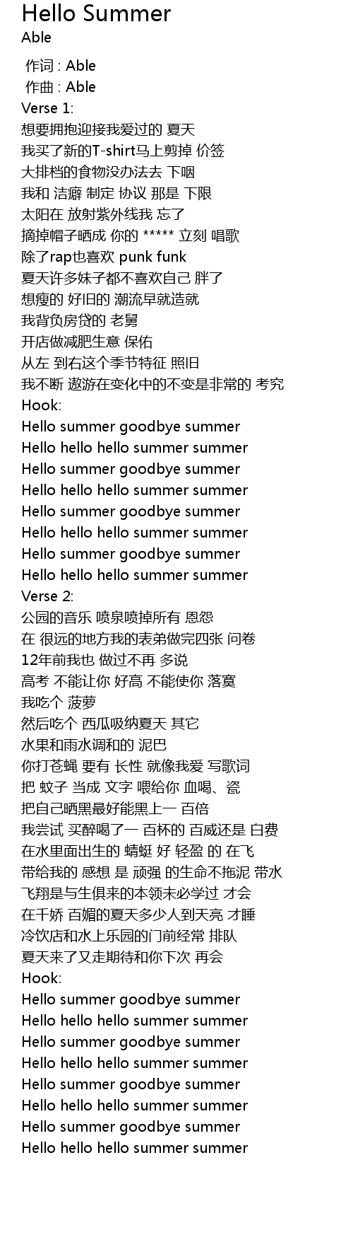 | [00:35.47] | 摘掉帽子晒成 你的 ***** 立刻 唱歌 |