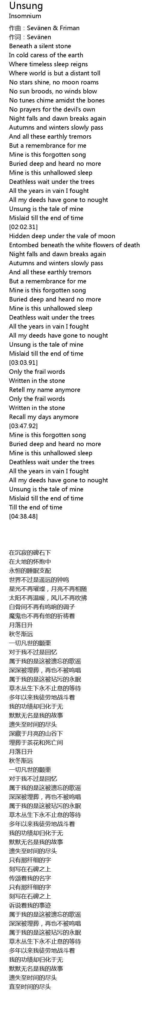 | [02:45.16] | Deathless wait under the trees |