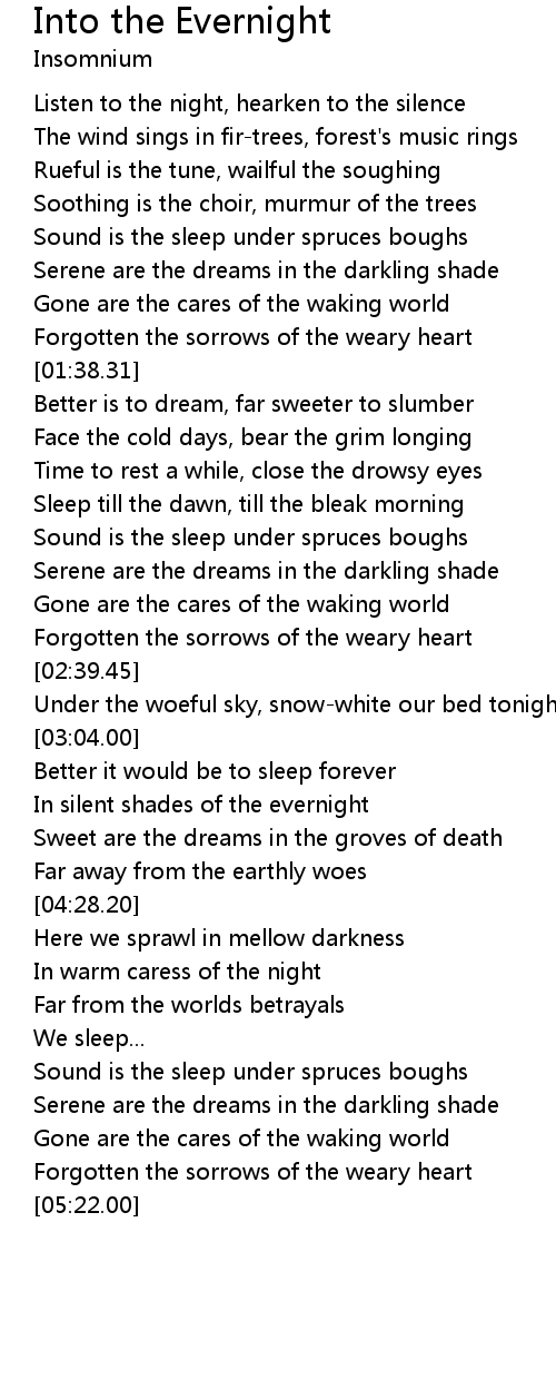 In silent shades of the evernight |