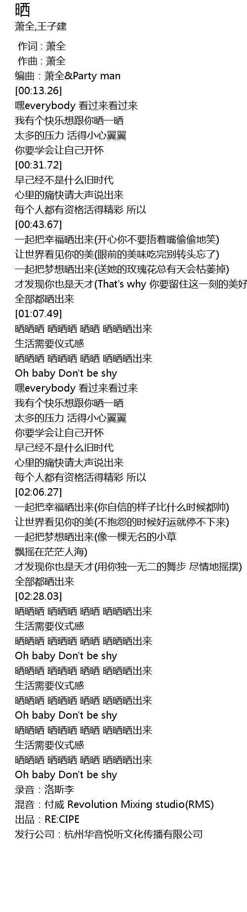 | [02:42.93] | 晒晒晒 晒晒晒 晒晒 晒晒晒出来 |
