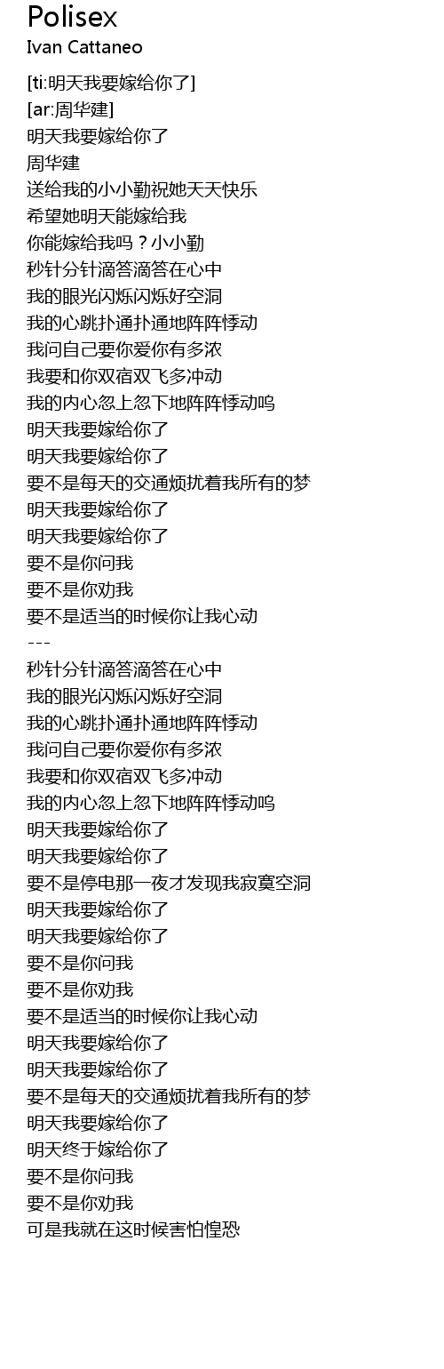 | [02:51.338] | 明天我要嫁给你了 |