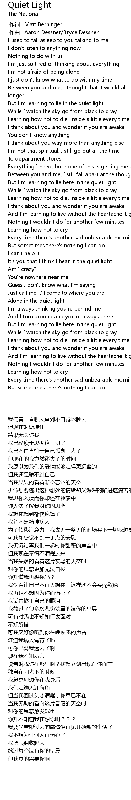 | [00:00.000] | zuo ci : Matt Berninger |