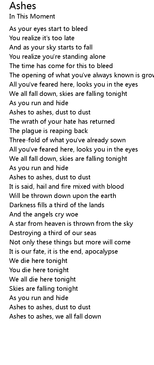 Ashes to ashes, we all fall down |