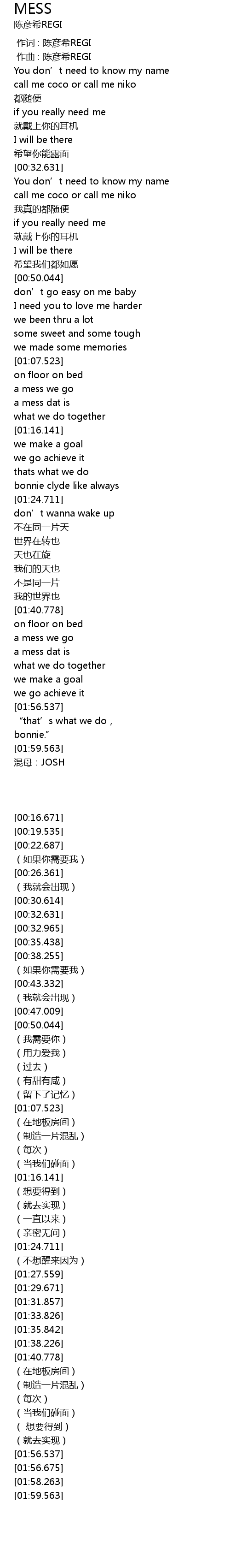 | [02:01.109] | 混母:JOSH |