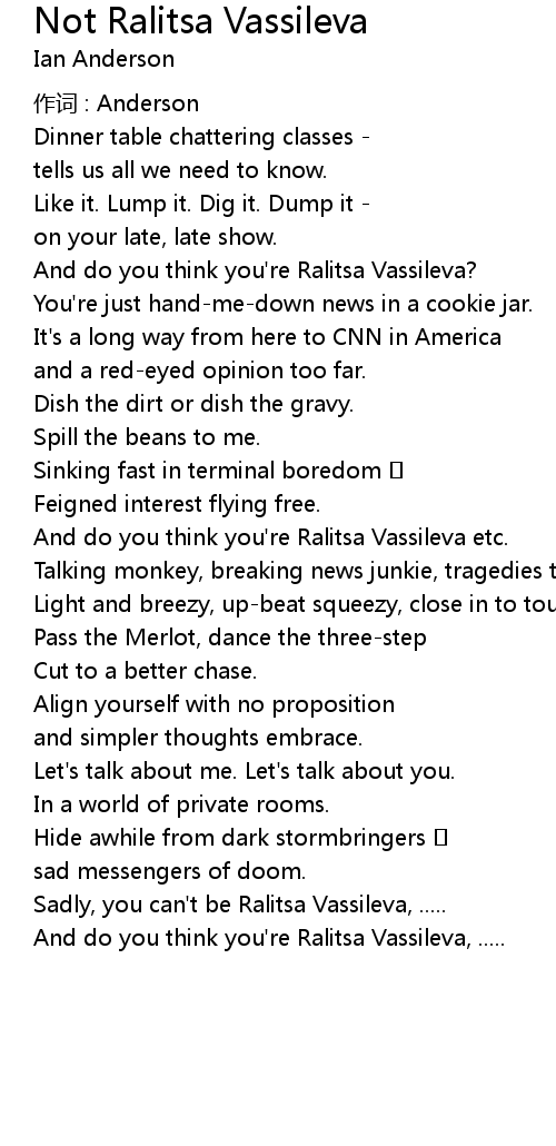 | And do you think you're Ralitsa Vassileva, ..... |