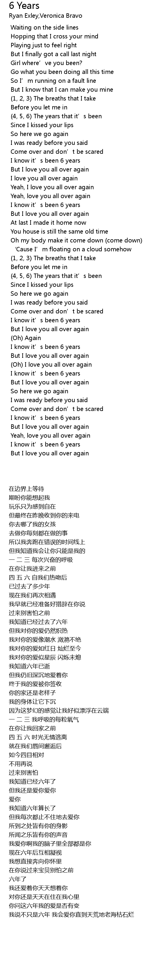 | 歌曲 | 6 Years |