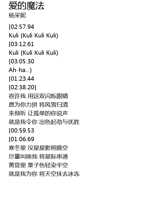 | [03:16.25][03:12.61][03:01.57][02:25.32][02:14.38][01:16.23][00:18.60] | Kuli Kuli Kuli Kuli Kuli Kuli |