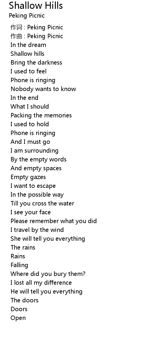 | [00:00.000] | 作词 : Peking Picnic |