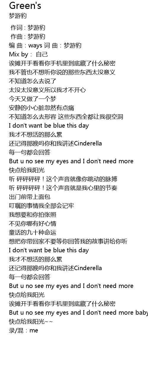 | [00:58.161] | But u no see my eyes and I don' t need more |