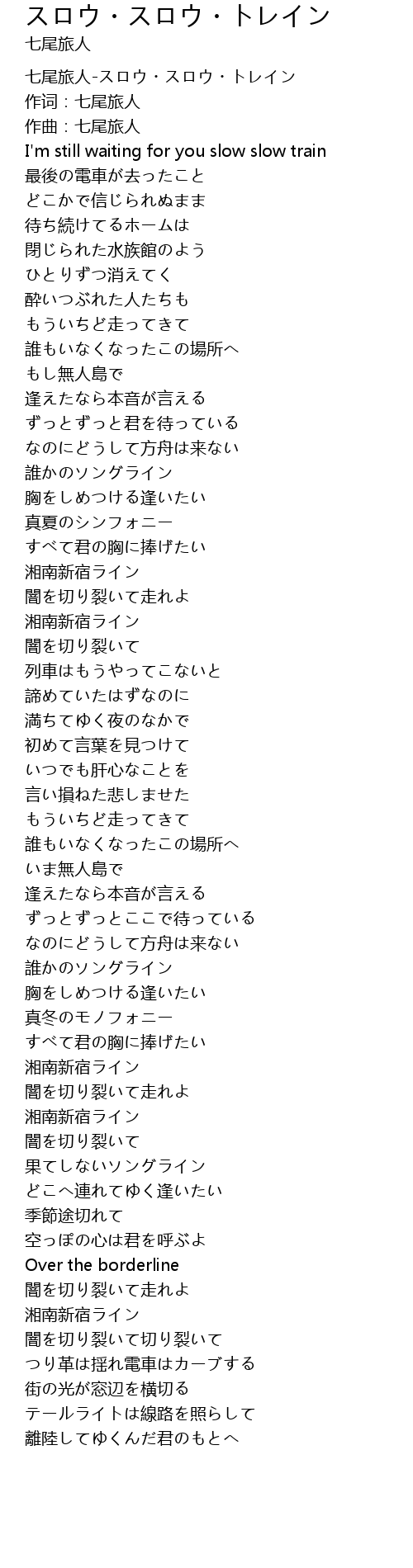 | [00:19.410] | I'm still waiting for you slow slow train |