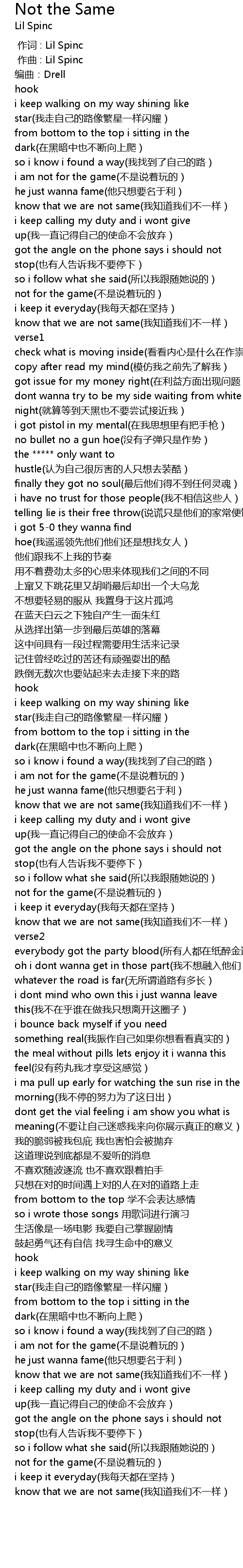 | [01:56.113] | know that we are not same wǒ zhī dào wǒ men bù yí yàng |