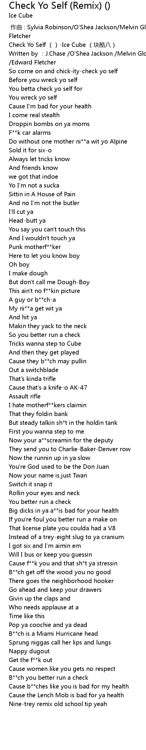 | [00:00.00] | Check Yo Self Ice Cube kuai ku ba |