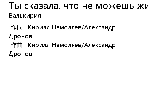 | 歌曲 | Ты сказала, что не можешь жить так долго |