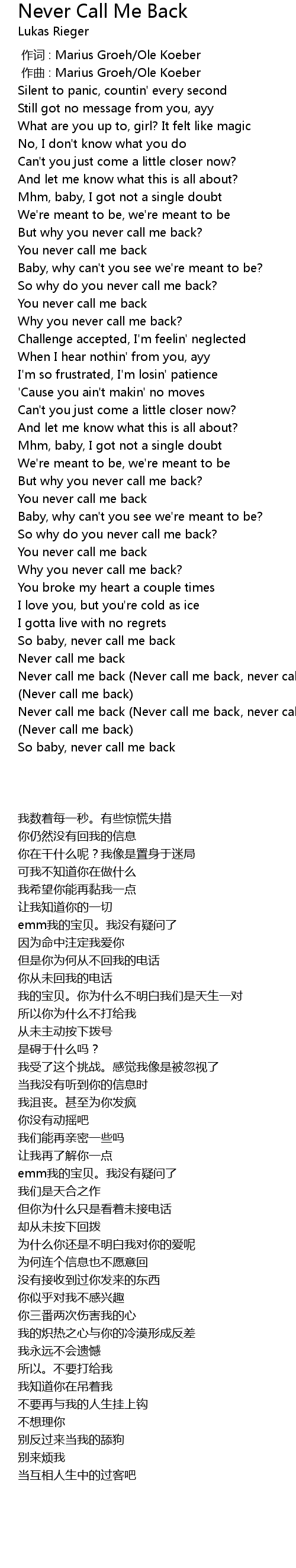 | [02:44.48] | Never call me back (Never call me back, never call me back) |