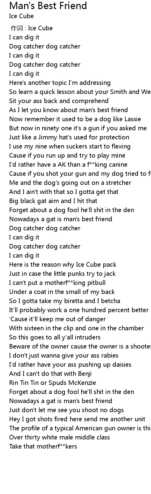 | [00:22.59] | As I let you know about man' s best friend |