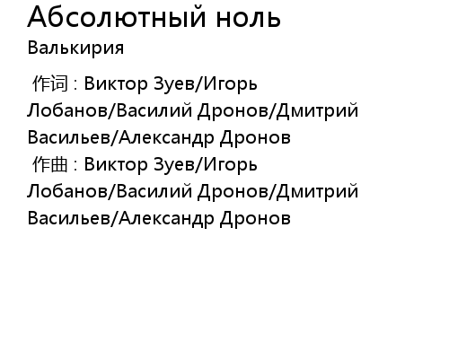 | 歌曲 | Абсолютный ноль |