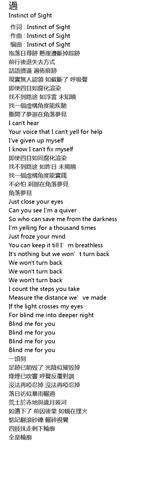 | [00:01.000] | zuò qǔ : Instinct of Sight |