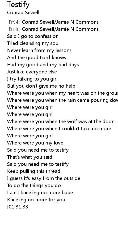 | [00:00.000] | zuo ci : Conrad Sewell Jamie N Commons |