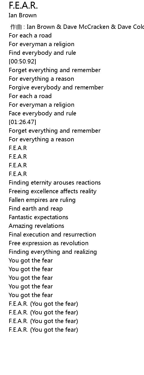 | [02:50.67] | F.E.A.R. (You got the fear) |