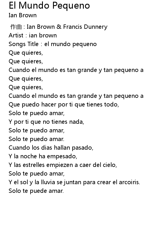 | [00:16.79] | Songs Title: el mundo pequeno |