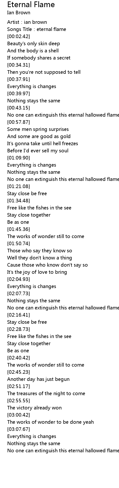 | [00:01.17] | Songs Title: eternal flame |