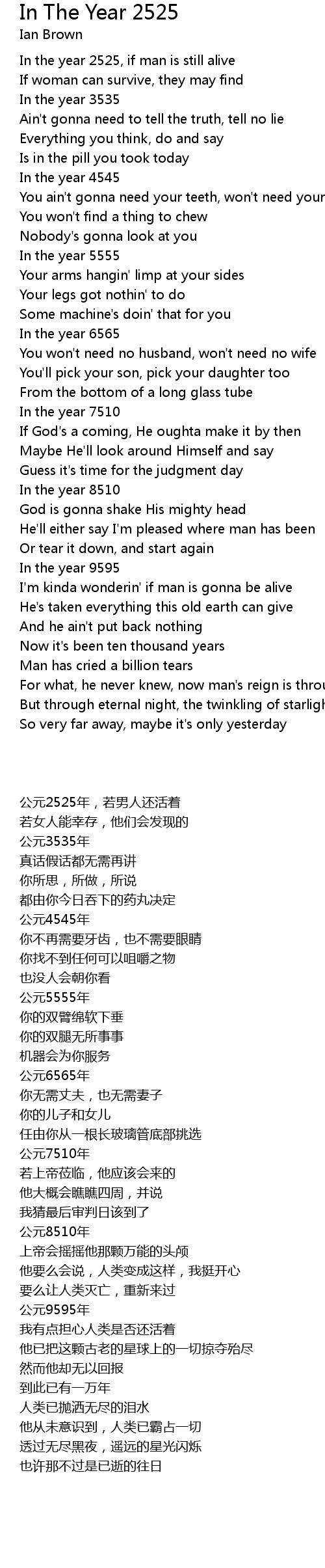 In the year 2525, if man is still alive |