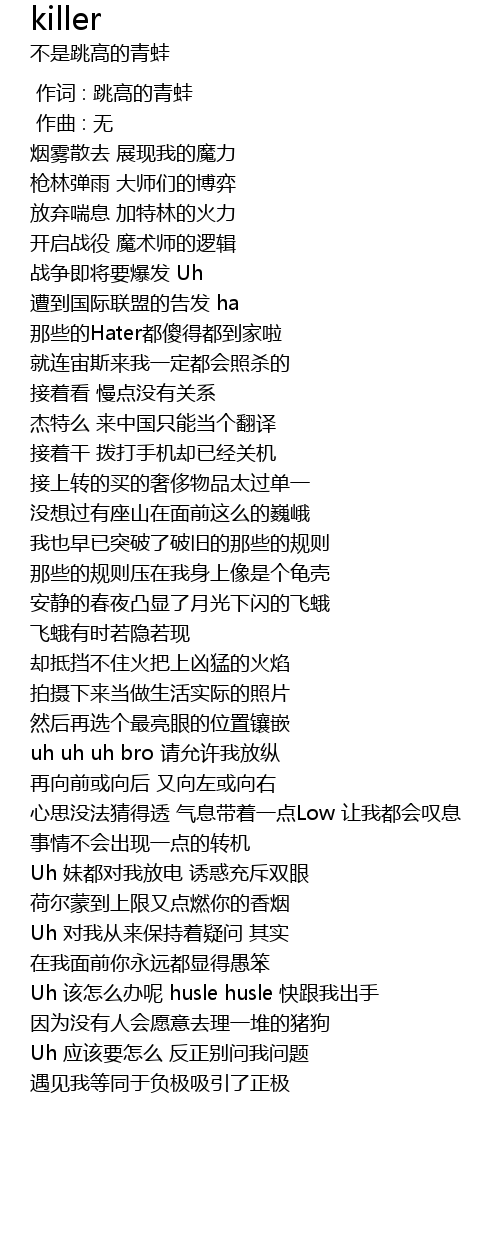 | [00:00.000] | 作词 : 跳高的青蛙 |