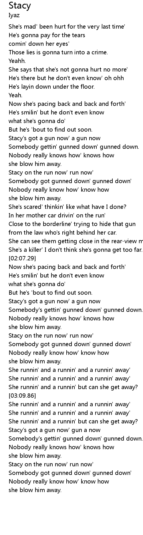 | [01:19.35] | Stacy on the run now' run now' |