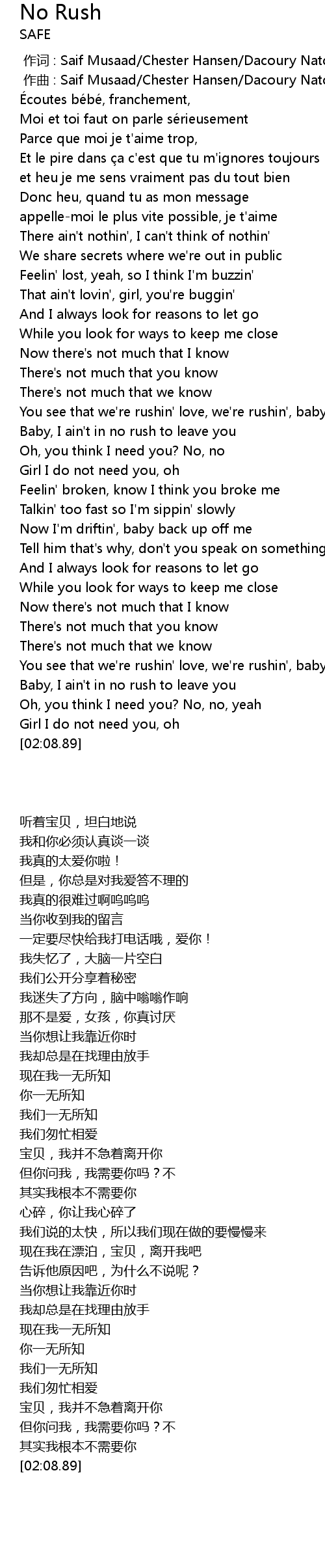 | [00:56.43] | You see that we're rushin' love, we're rushin', baby |