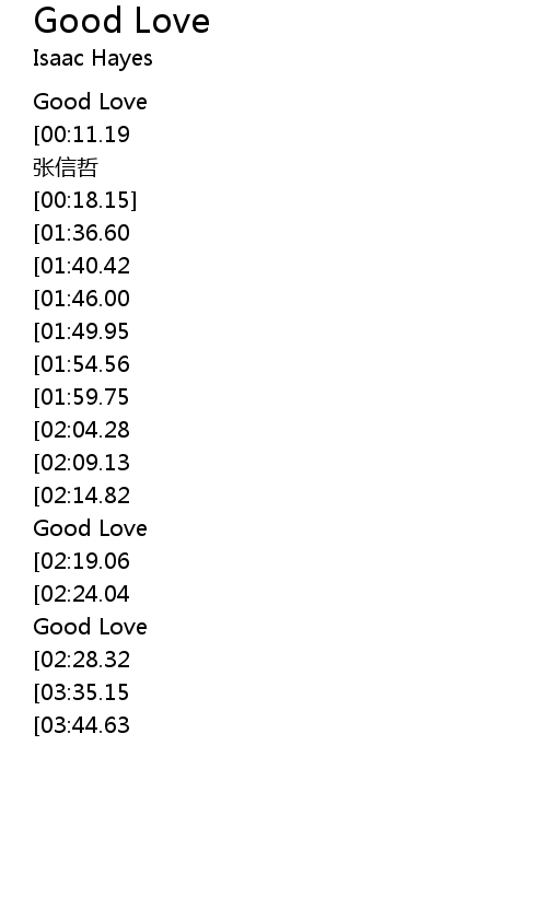 | [00:58.89][02:14.82][02:33.70][03:12.12][03:31.17][03:50.14][04:09.06] | You Give Good Love |