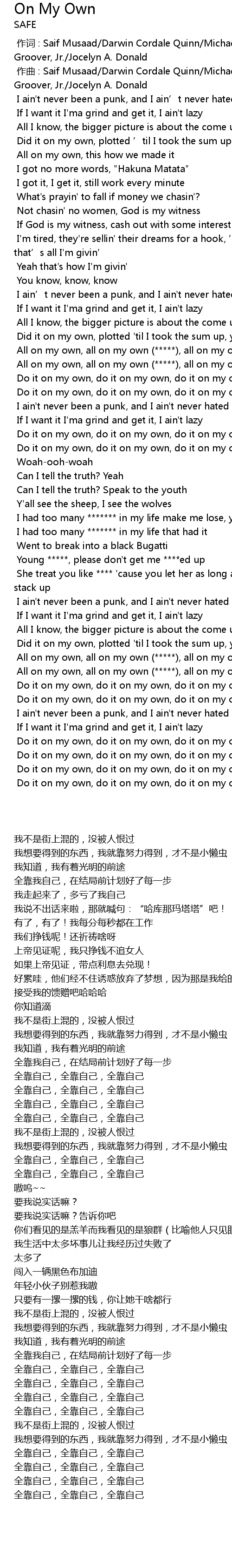 | [02:35.959] | Did it on my own, plotted 'til I took the sum up, yeah yeah |