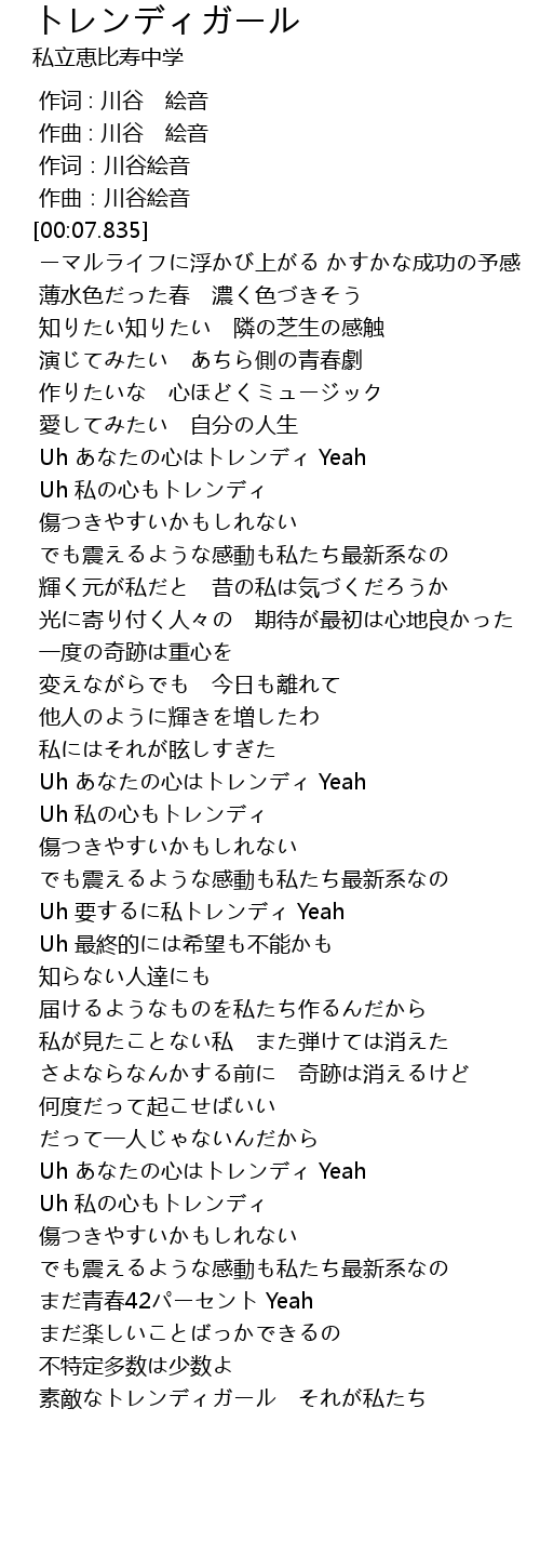 | [02:00.588] | Uh 要するに私トレンディ Yeah |