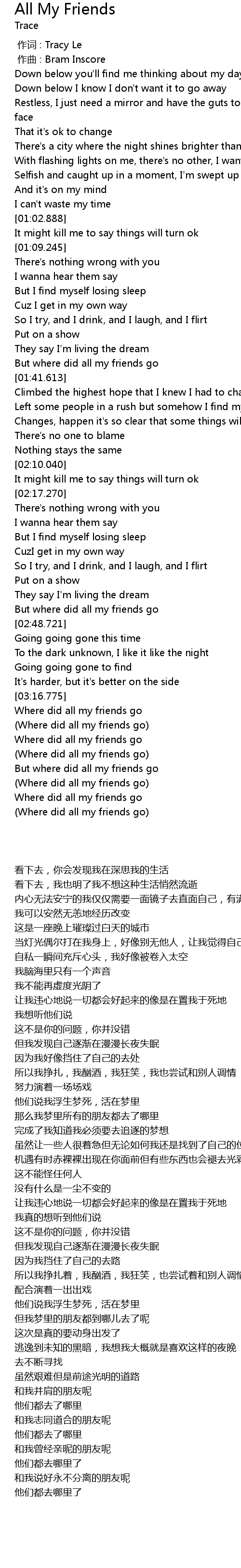 | [03:20.396] | (Where did all my friends go) |