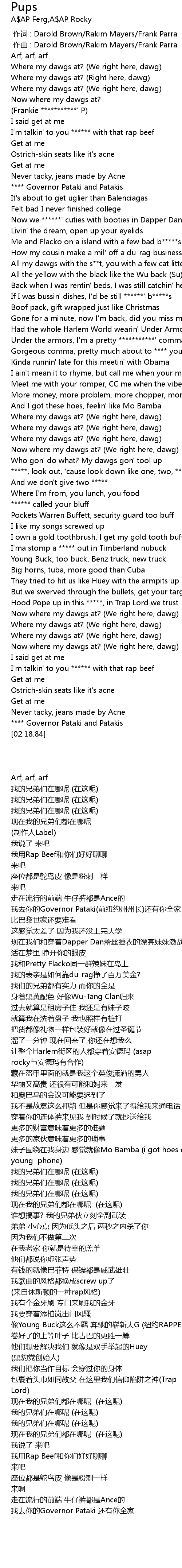 | [00:34.20] | Now we ******' cuties with booties in Dapper Dan silk pajamas |