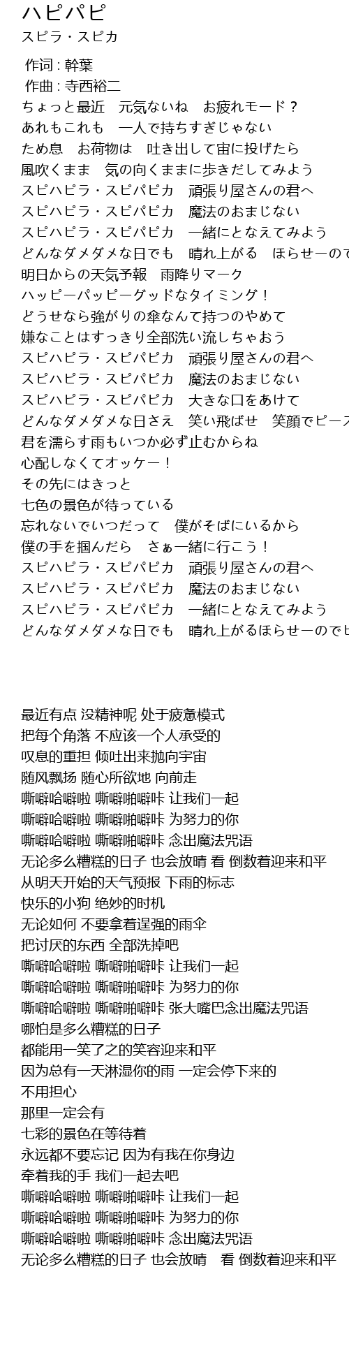 | [02:03.421] | スピハピラ・スピパピカ 大きな口をあけて |