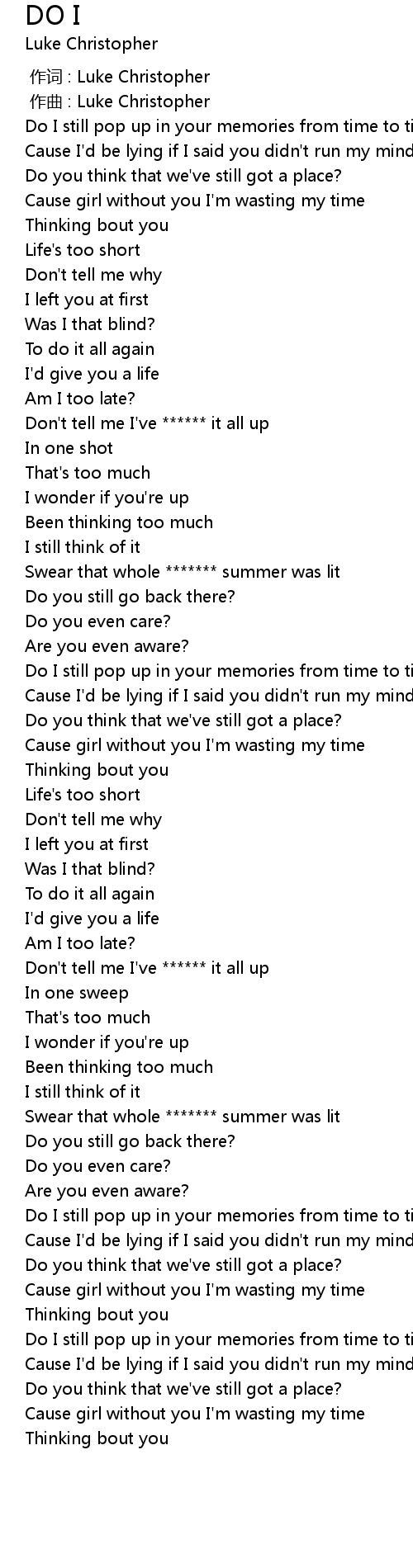 | [00:00.000] | 作词 : Luke Christopher |
