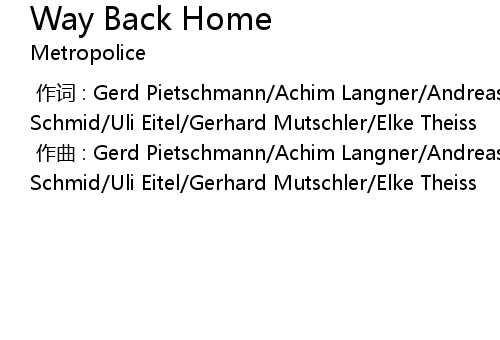 | [00:00.000] | 作曲 : Gerd Pietschmann/Achim Langner/Andreas Schmid/Stefan Schmid/Uli Eitel/Gerhard Mutschler/Elke Theiss |