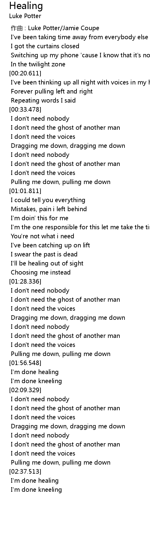 | [00:00.000] | zuo qu : Luke Potter Jamie Coupe |