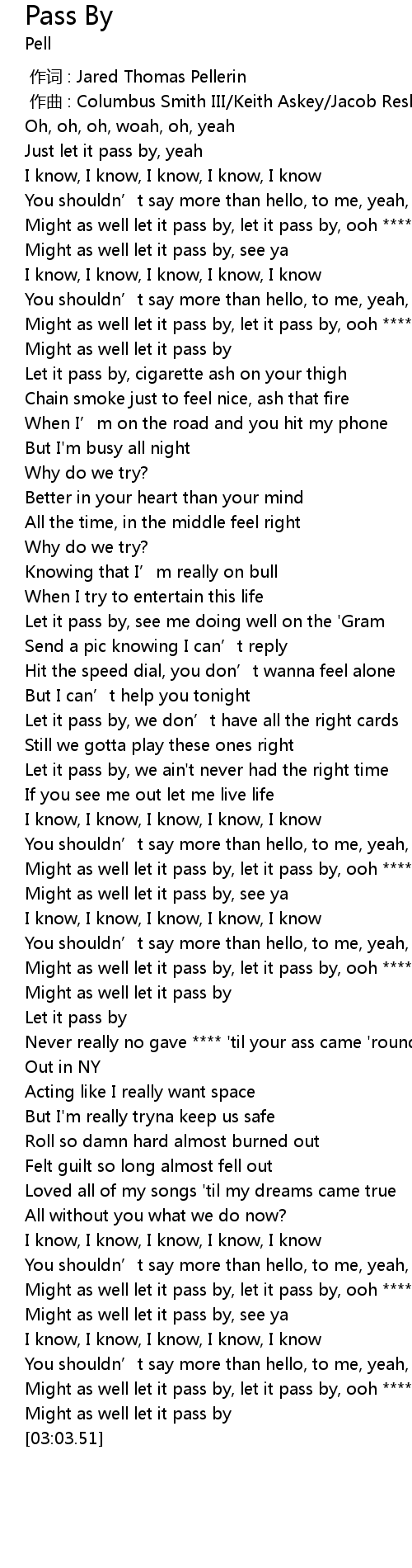 | [02:57.24] | Might as well let it pass by, let it pass by, ooh ****, uh |