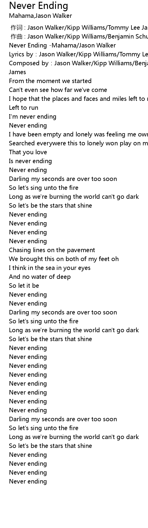 | [00:00.234] | Never Ending -Mahama/Jason Walker |