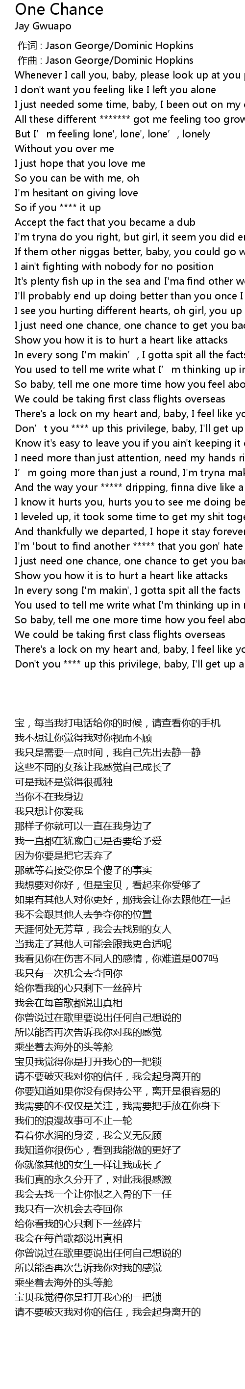 | [00:53.437] | I just need one chance, one chance to get you back |